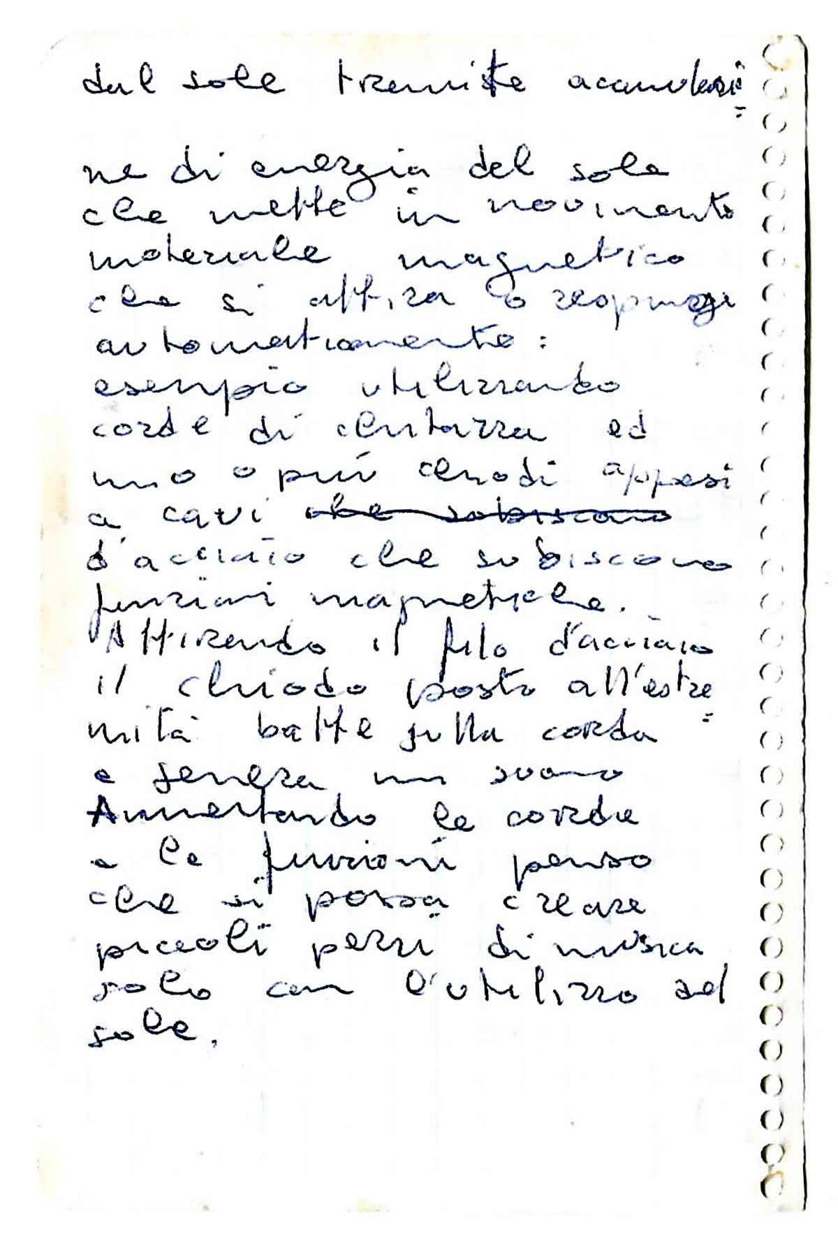 Il suono deve suscitare da forze messe in moto dal sole tramite accumulazione di energia del sole che mette in movimento materiale magnetico che si attira o respinge automaticamente: esempio utilizzando corde di chitarre ed uno o più chiodi appesi ai cavi d’acciaio che subiscono funzioni magnetiche.
