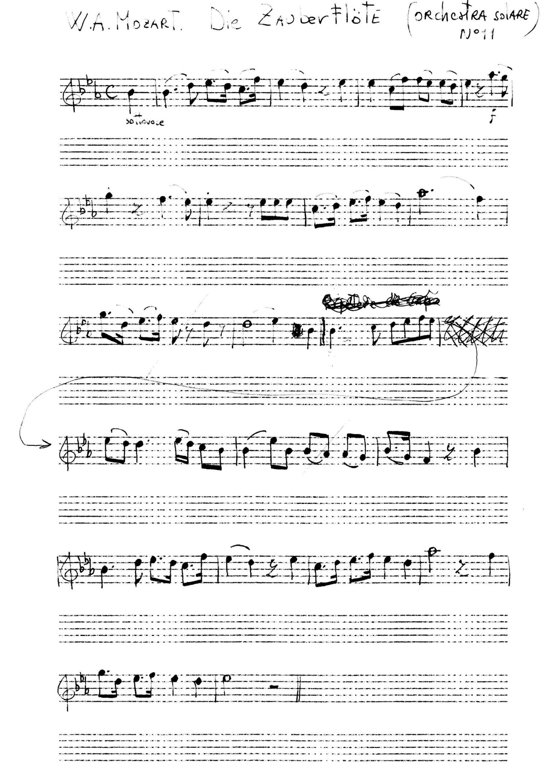 In quegli anni incontrammo Paolo Isotta, che insegnava al Conservatorio di Torino ed era anche, il critico musicale del Corriere della Sera. Scrisse molti saggi ed era ritenuto uno dei più importanti critici musicali in Italia. Con Paolo discutemmo della nostra idea di integrazione delle varie arti, e del ruolo della musica in questa composizione. Paolo si appassionò al progetto, dedicandoci innumerevoli serate, ed individuando per noi una serie di brani che si integravano perfettamente nella nostra ricerca, e che sarebbero stati utilizzati nelle varie Orchestre solari. I primi, che risultarono poi essere i più significativi per il nostro lavoro, furono i brani di Mozart (dal Flauto Magico) ed Haydn (dal Preludio della Creazione), che furono scelti rispettivamente per OS 3 ed OS 4.