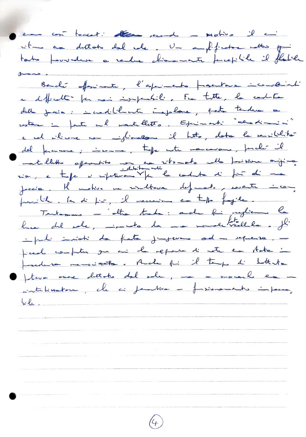 Ad agosto io poi partì per la Cina, alla ricerca di un’altra montagna sacra; ma in fondo quell’estate di per sé già rappresentò il nostro raggiungere la cima della montagna, la sintesi del mezzogiorno, il bianco/cerchio/crescendo musicale della nostra opera. Orchestra Solare fu la nostra perfezione raggiunta.