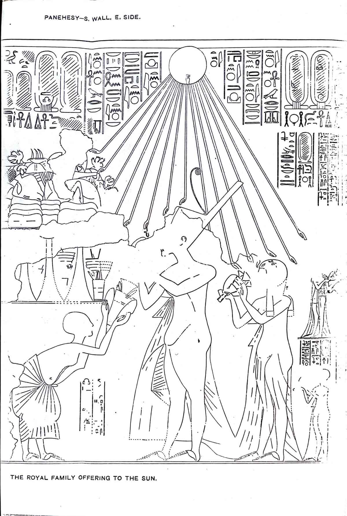 Esiste un geroglifico a El Amarna dove di vede il sole in alto nel cielo, cha manda i suoi raggi diritti verso il mondo, e questi, attraversando un simbolo (nel geroglifico, la croce della vita), portano i suoi doni all’umanità sottostante. In Orchestra Solare abbiamo usato lo stesso percorso, integrando un simbolo al centro di un semicerchio inclinato (la volta del cielo), che attraversato dal sole, andava a disegnare una forma su di un semi-ottagono al suolo (la terra).