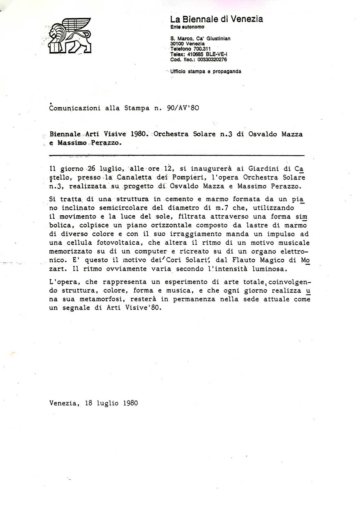 ‘Orchestra Solare 3’ rimase nel suo sito originario per la durata di tre biennali. Nel 1988, Carandente, nuovo direttore della Biennale Arti Visive, dichiarò l’intervento illegittimo perché costruito su suolo demaniale, senza un’autorizzazione ad hoc. Il monumento venne successivamente smantellato.